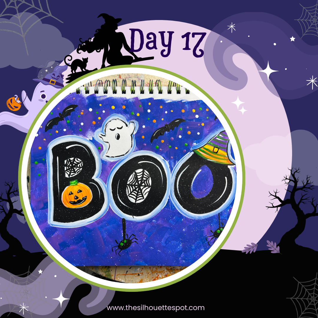 Step by Step Beginner acrylic painting for beginners. This BOO Acrylic painting is kid-friendly too.