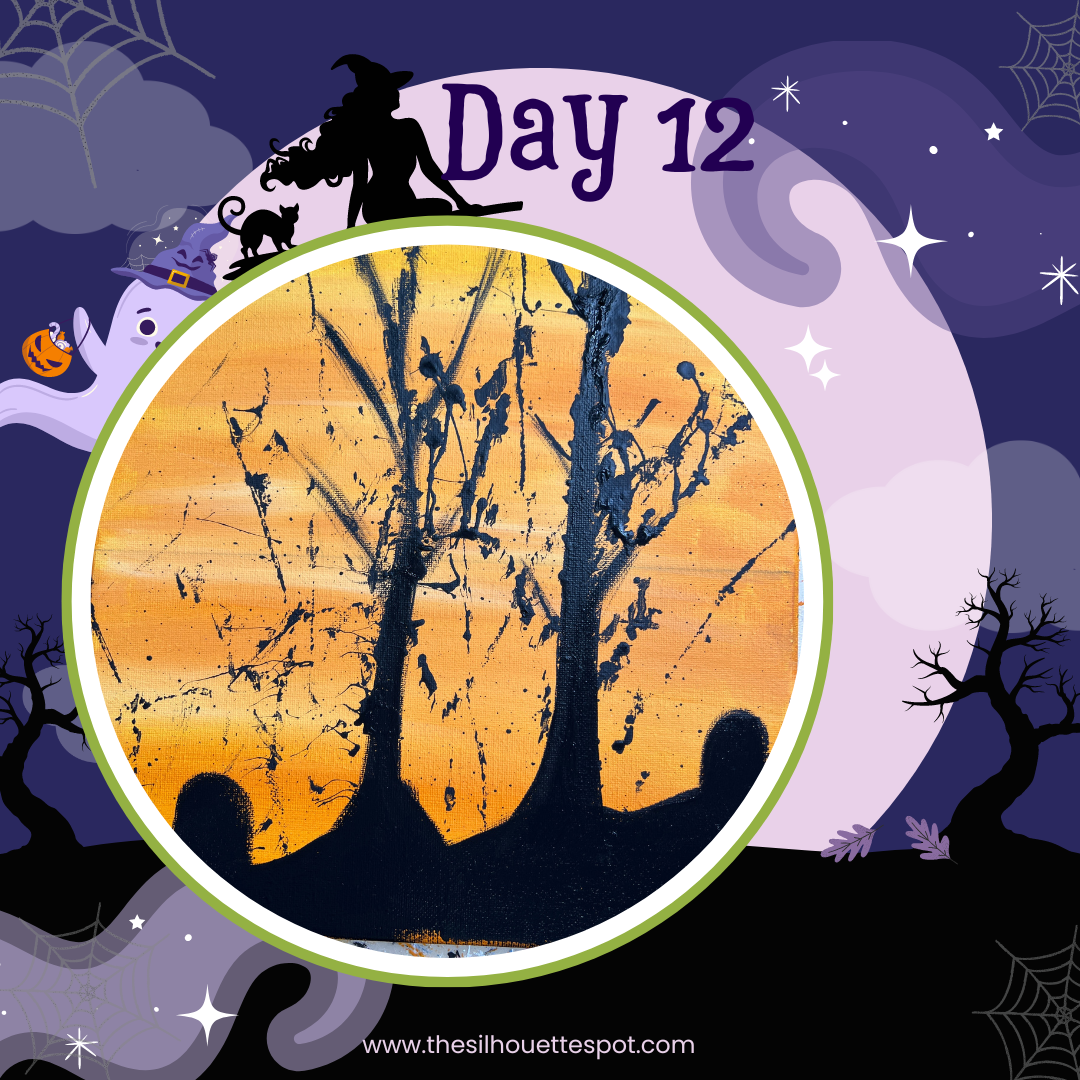Paint this spooky tree landscape with 3 colors and a tree branch!