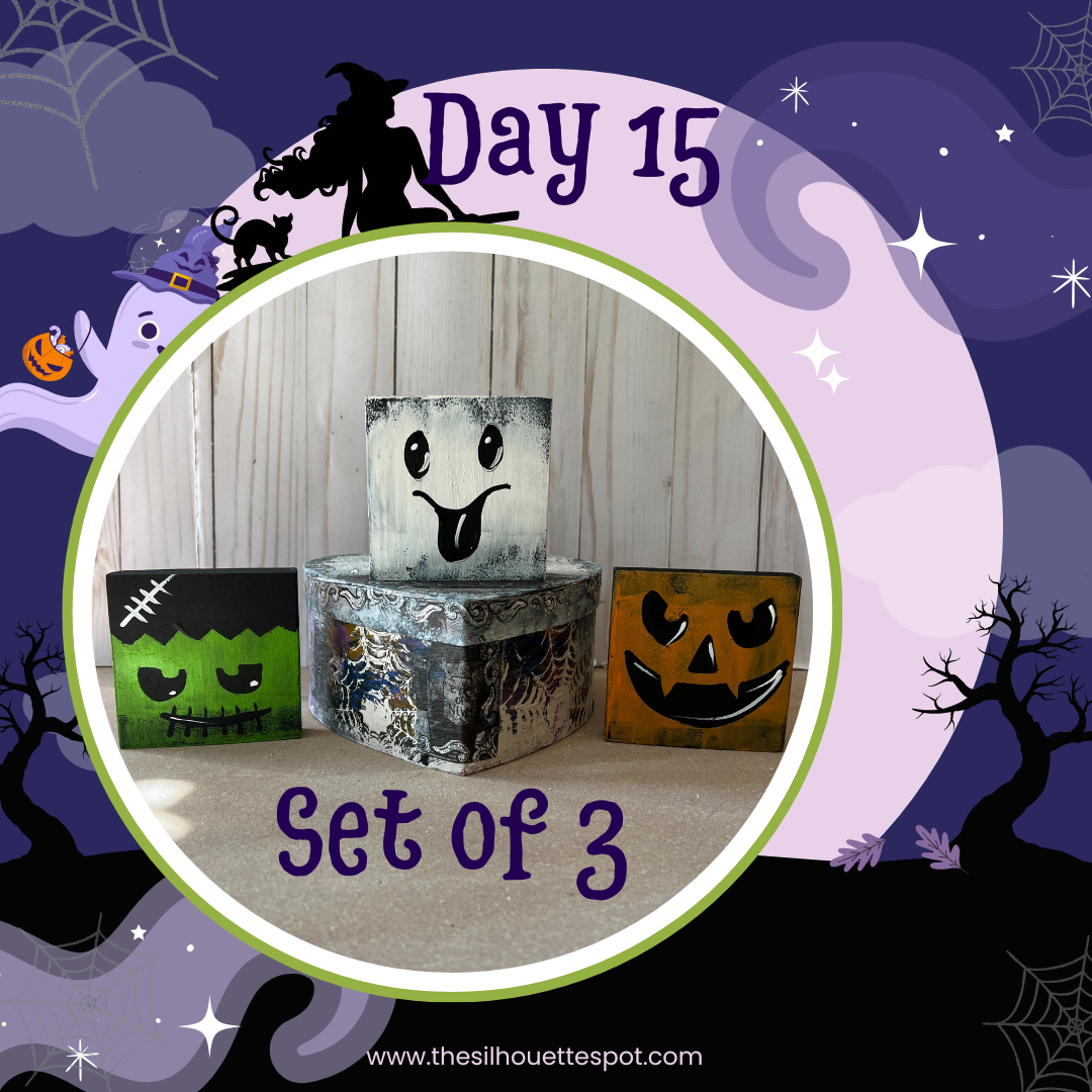 How to DIY Spooky Halloween blocks from scrapwood and acrylic paint.