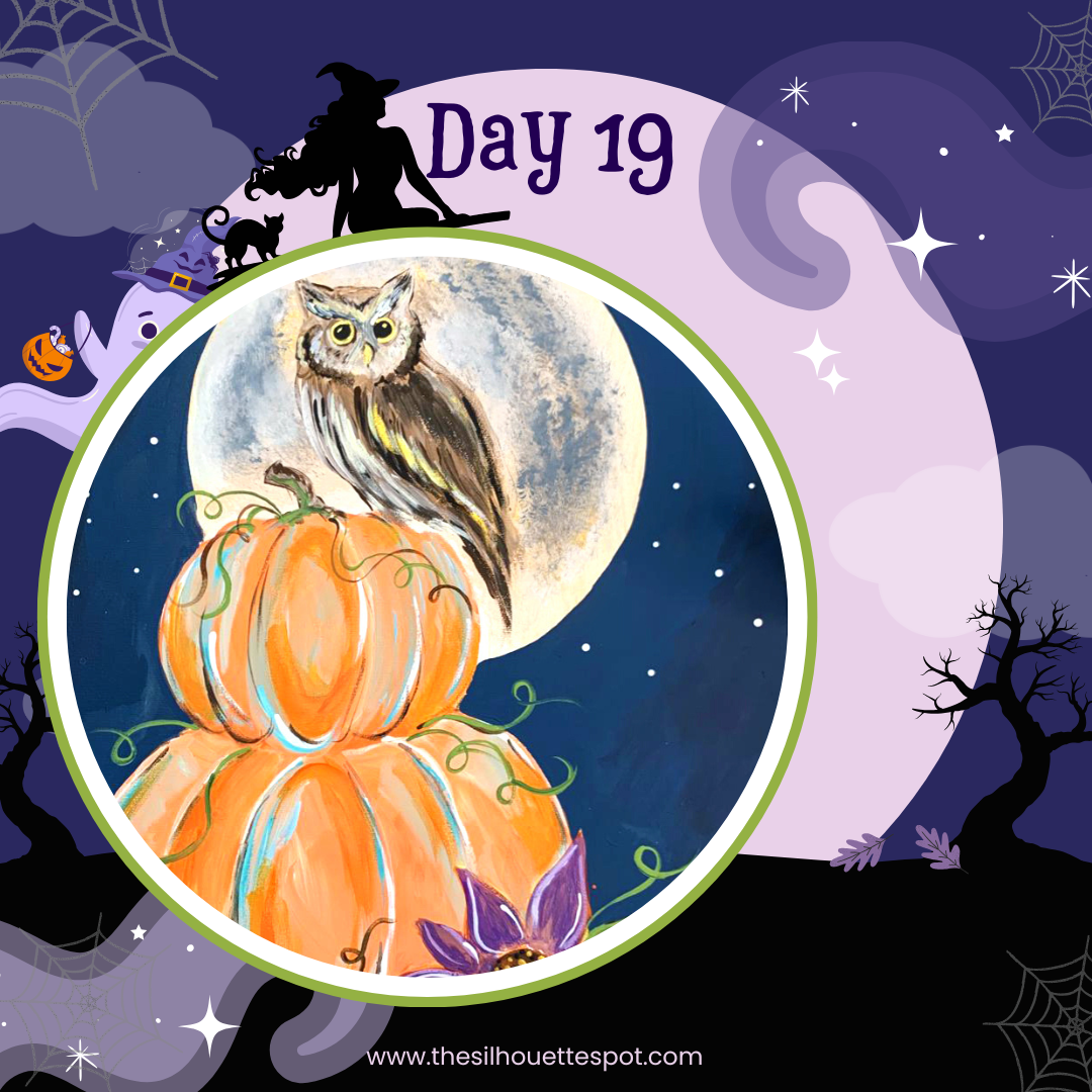 Beginner Acrylic Step By Step Halloween painting. Paint this fun Owl Harvest moon painting in acrylic paint.