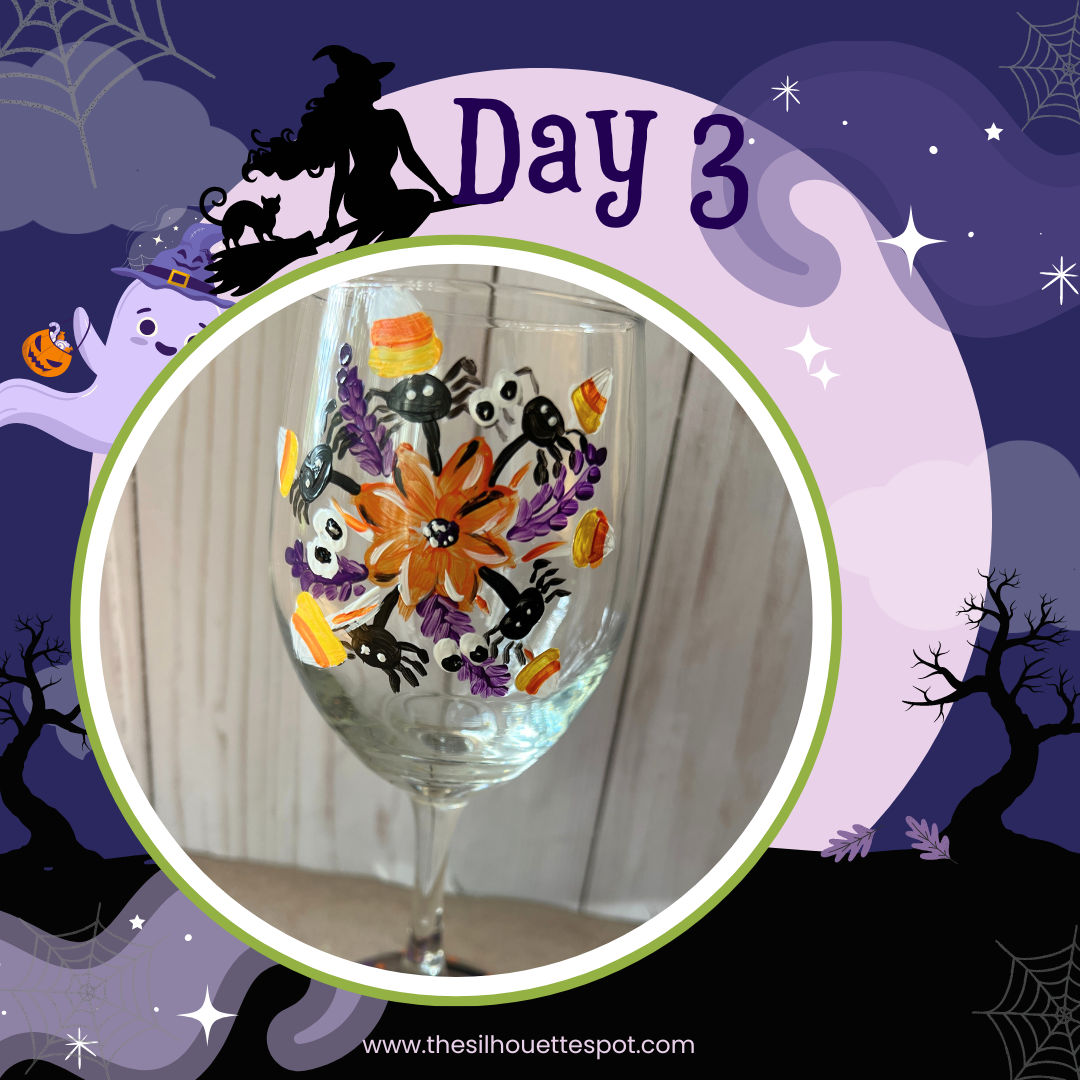 Learn how to paint wine glasses for Halloween fun!This step by step tutorial will walk you through the steps of painting wine glasses for DIY Halloween with water based enamel paints.