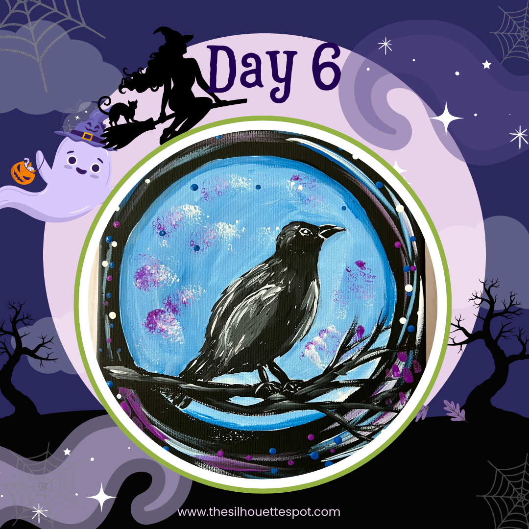 Learn to paint this Raven for Halloween in this step by step beginner acrylic painting using only 4 acrylic paint colors. Black, White, Purple and Blue
