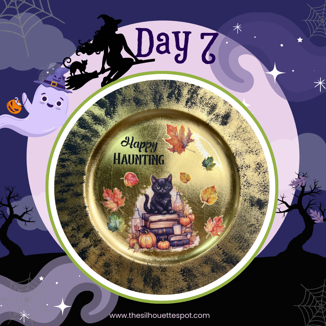 Halloween Rub On Transfers on a Dollar Tree Charger Plate.