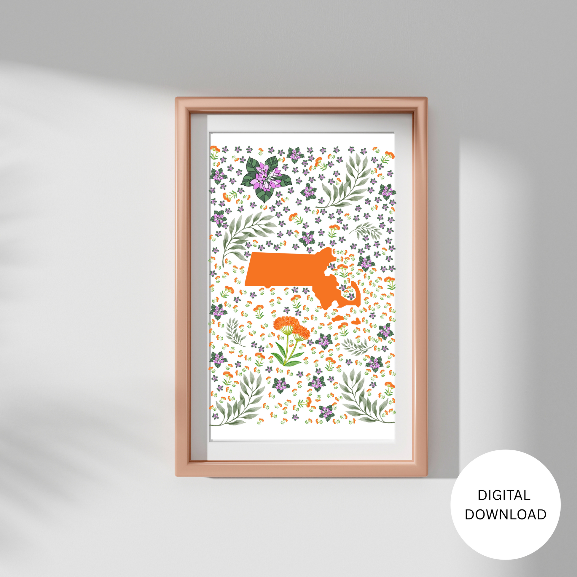 Brighten your space with the state of Massachusetts with its US flower prints.