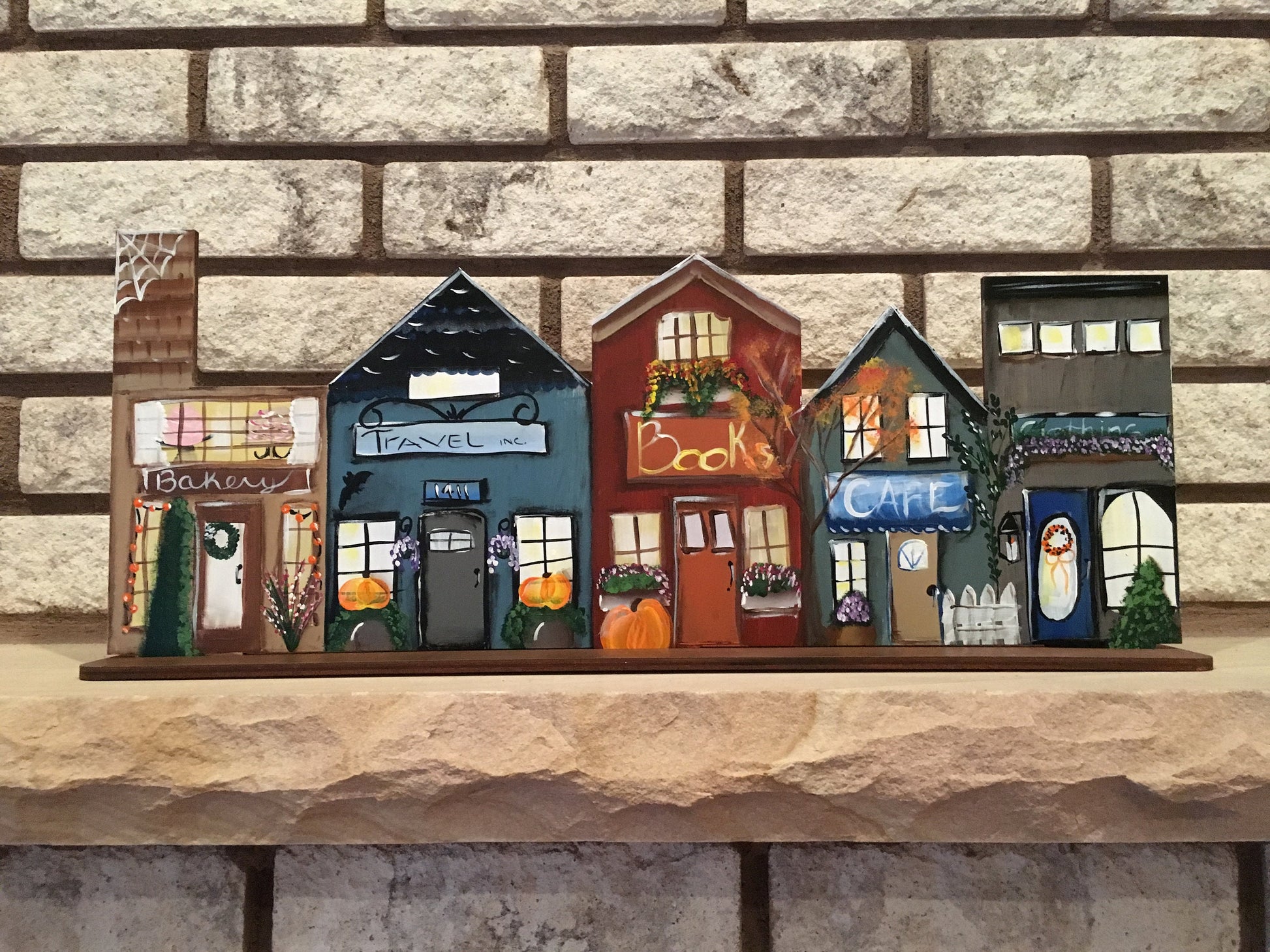 Miniature Village-Hand Painted Town for Fall or Autumn Shelf Sitter