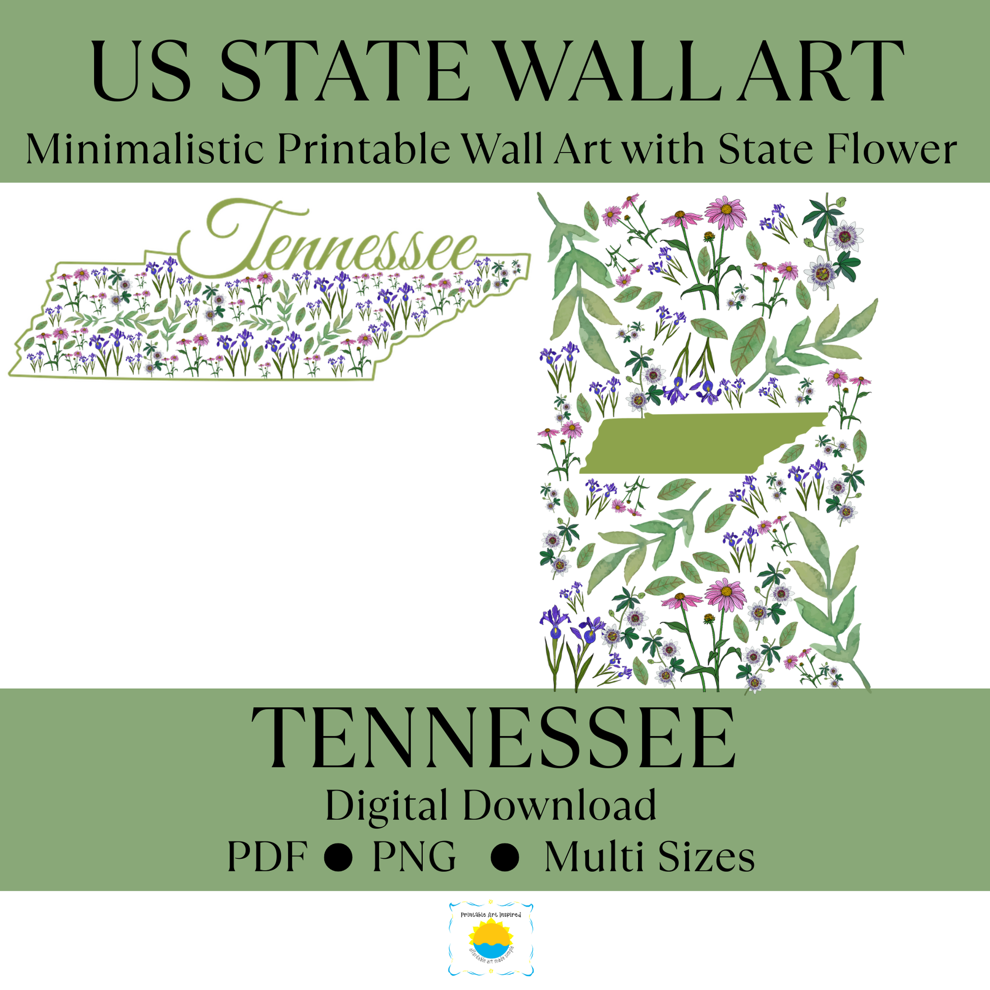 Tennessee State & State Flower Printable Wall Art – Digital Download