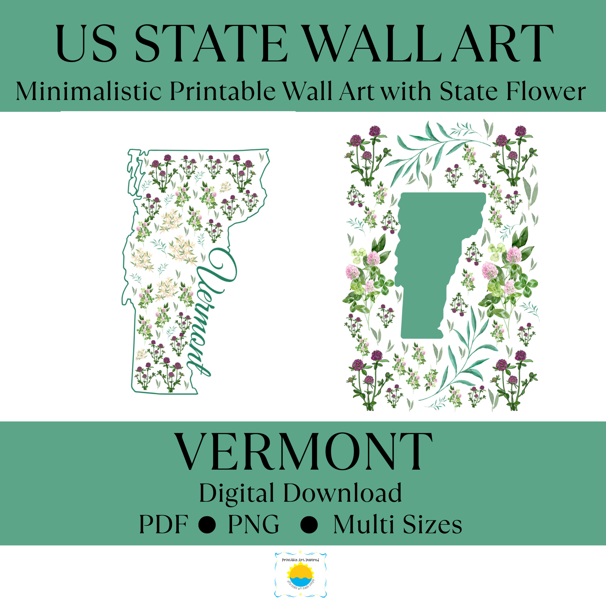 Vermont State & State Flower Printable Wall Art – Digital Download