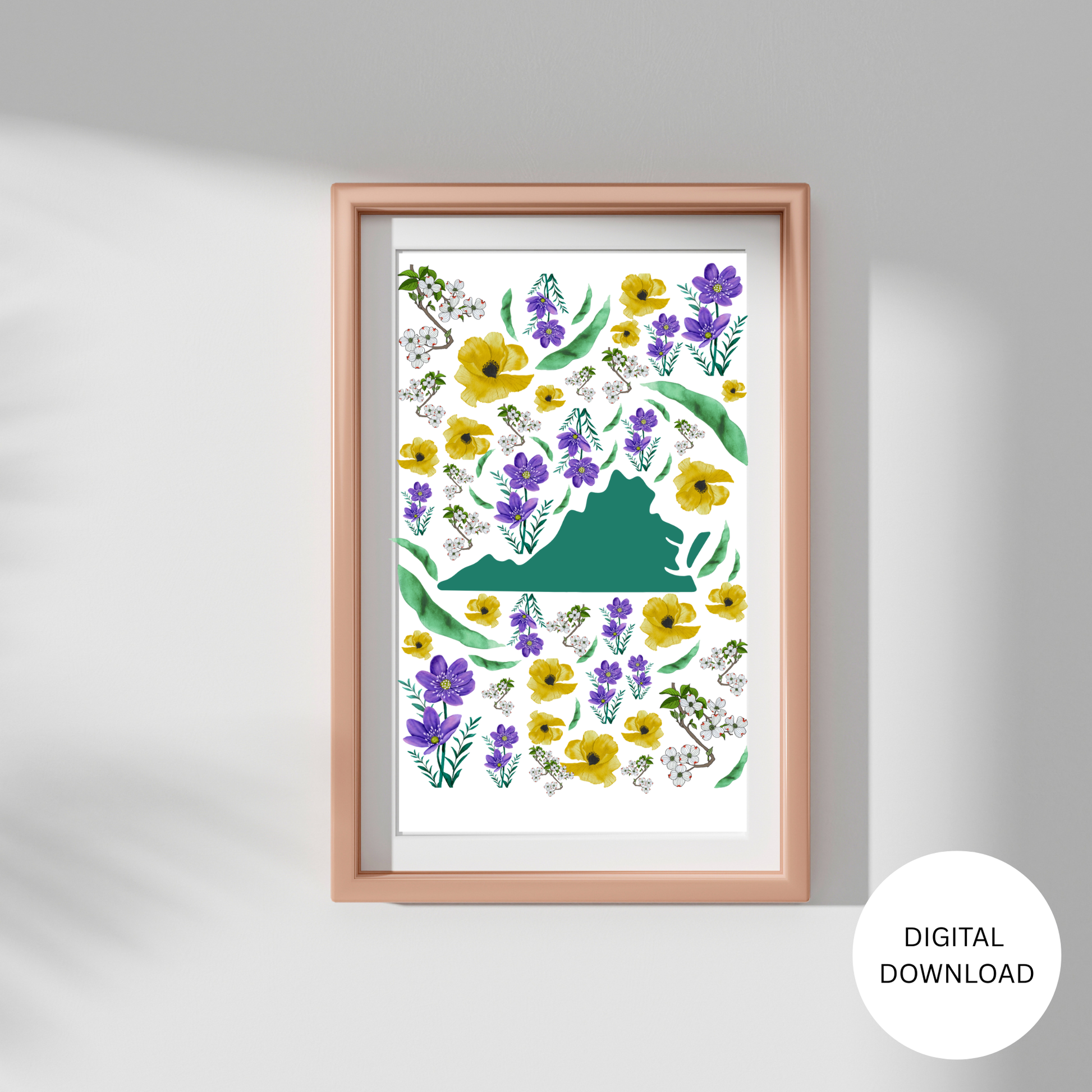 Virginia State & State Flower Printable Wall Art – Digital Download